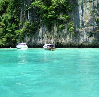 Tour to Phi Phi Island by Cruise, Phi Phi island is located just 48 km to the east of Phuket, off the western coastline of Southern Thailand in the Andaman Sea. It is renowned worldwide for its natural scenic beauty with silver sand beaches fringed with palm trees, towering limestone cliffs and hills full of lush greenery. Offshore, a bank of coral reefs provide an unequal glimpse of marine life whilst spots such as the historic "Viking cave" add a fascinating dimension to exploration.